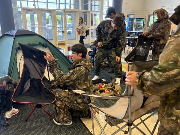 Wednesday was camo day. Although those who adorned a full suit of camo may have hidden in plain sight, it was easy to spot the school spirit Wednesday during lunch, when a group of “invisible” students participated in a cafeteria campfire.