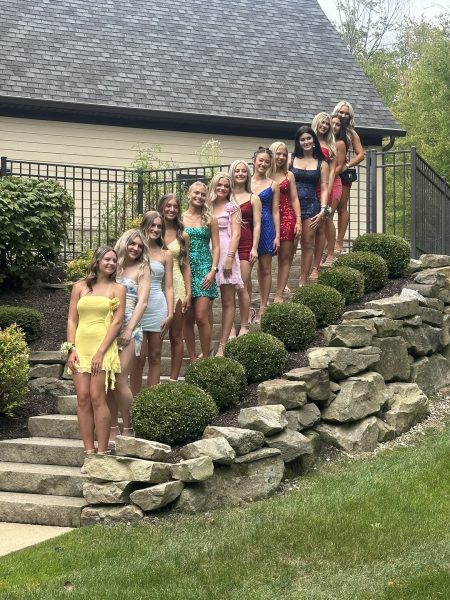 Friday’s Homecoming night also included the Homecoming Court, introduced during halftime of the football game, where Jamie Panichi and Giada Spisak were crowned Homecoming King and Queen. Walking through the cafeteria entrance from the gym, the top 5 made their way down the red carpet, each doing their own celebration as students lined up beside them. Brooke Vollman and Brooke Coldsnow showed off their handshake while walking down. Next, it was time for our group of three, Tillie Averre, Sunny Sears, and Lindsey Lieu, since unfortunately, Alex Waski wasn’t present.